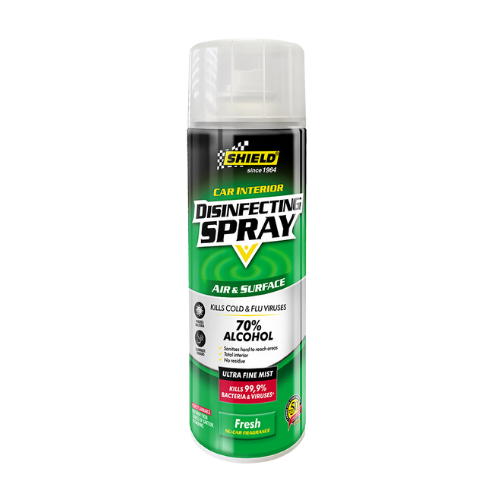 Disinfects your car or home with 70% alcohol spray. Kills cold & flu virus and most bacteria. Covers hard-to-reach areas with a fine mist. Leaves no residue.